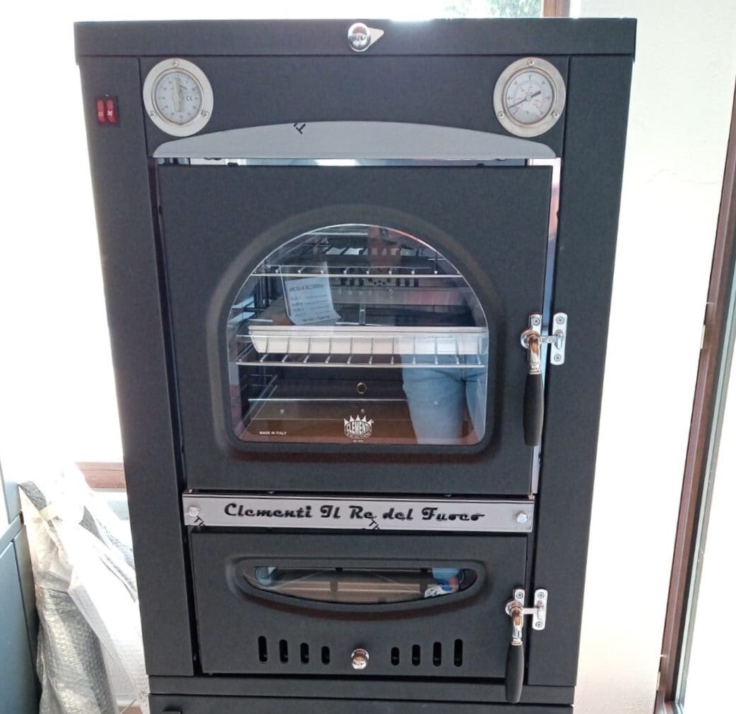 - Four à feu indirect avec chambre de combustion séparée pour éviter le contact des aliments avec les fumées et les cendres