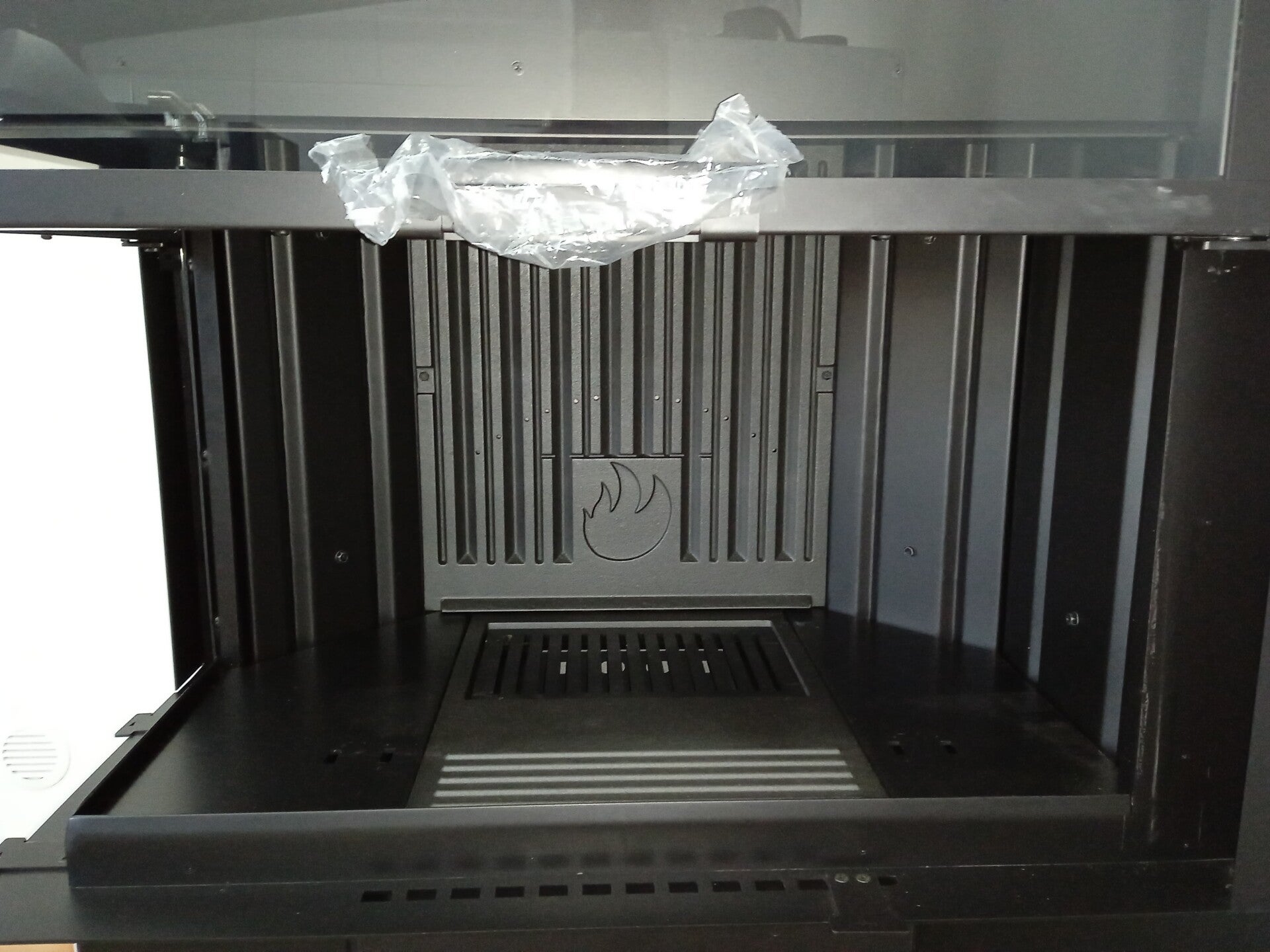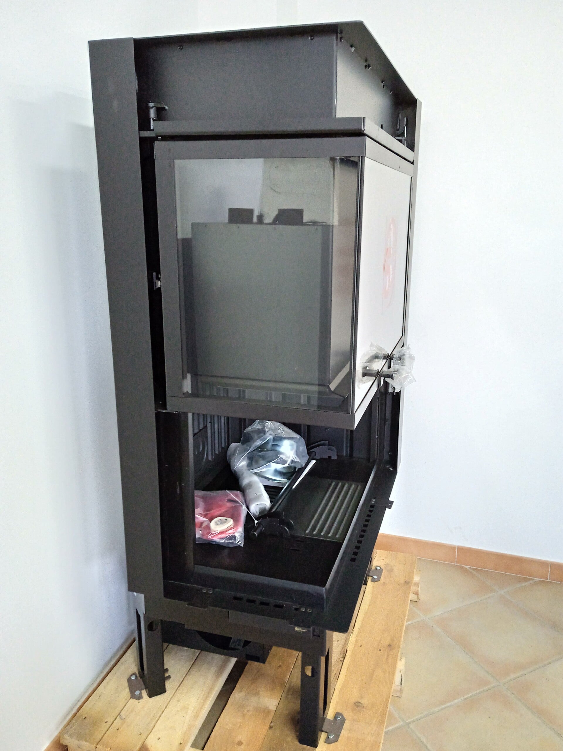 - Canalisation de l'air chaud par 2 sorties supérieures Ø 14 cm