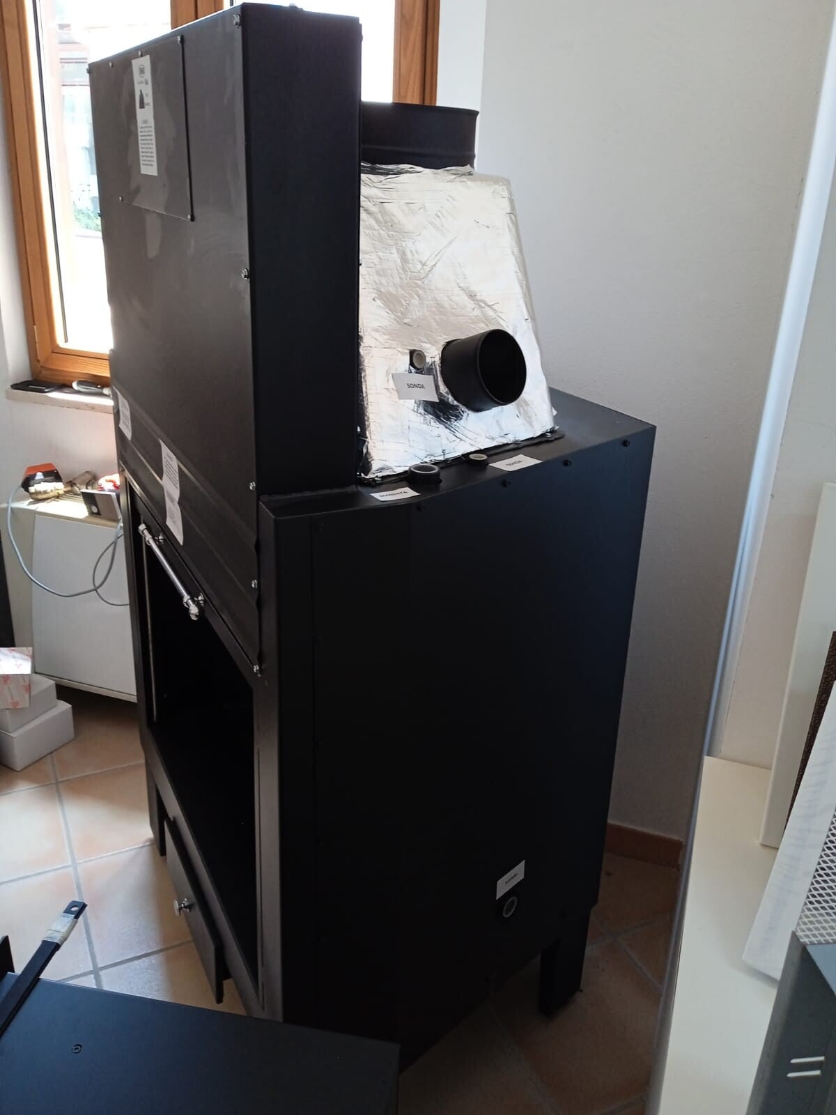 - Revêtement extérieur, hotte et tiroir en tôle noire lisse de 2 mm.