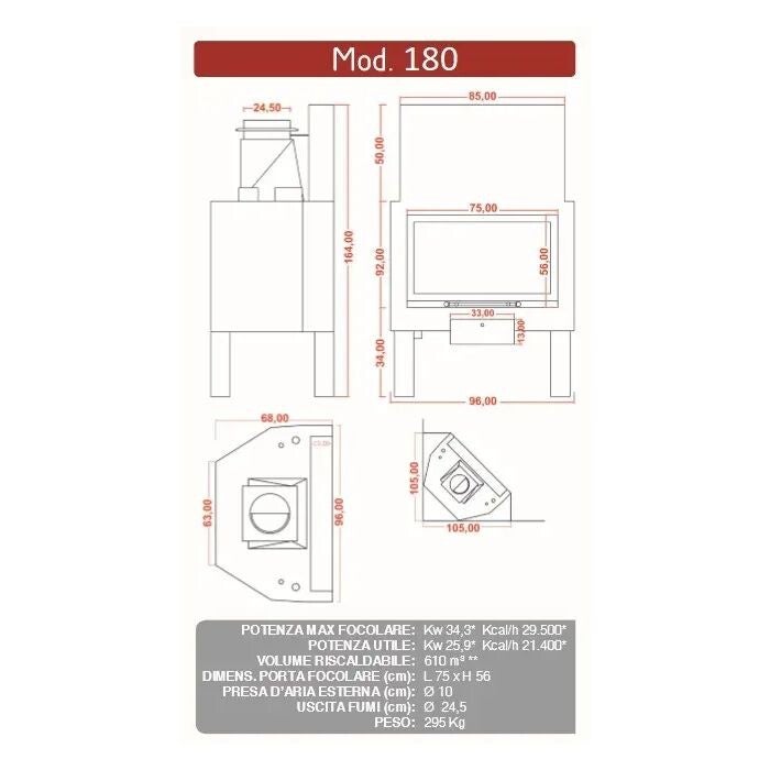 THERMOCHEMINÉE À BOIS SÉRIE VALLE MOD. 180
