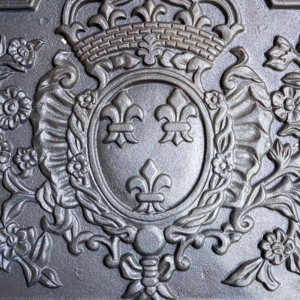 PLAQUE DE CHEMINÉE EN FONTE À DÉCOR ROYAL LILY CM. 50 × 50 H SP. 2 CM DS