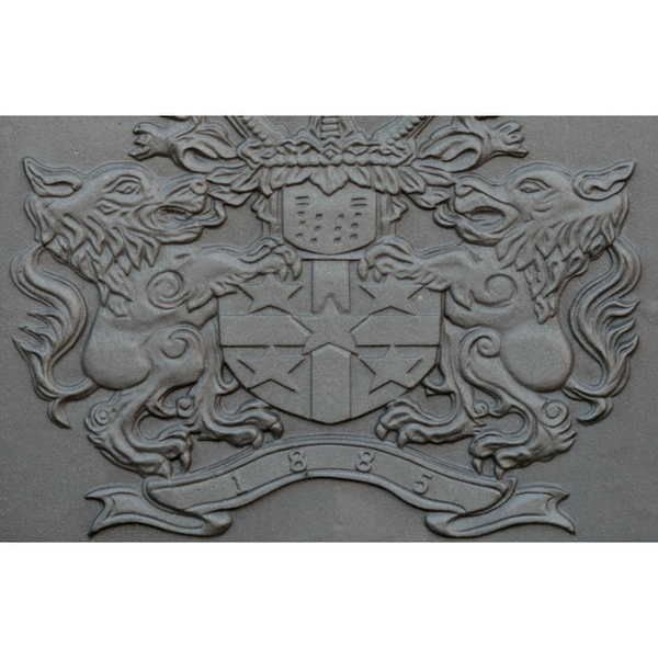 PLAQUE DE CHEMINÉE EN FONTE AVEC DÉCORATION LEONE CM. 55 × 45 H SP. 2 CM DS