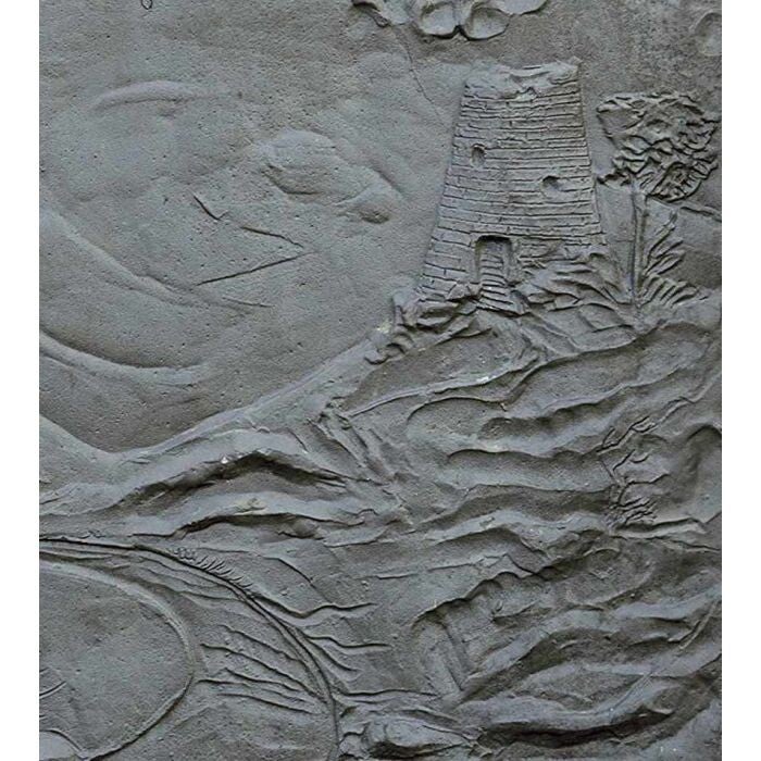 PLAQUE DE CHEMINÉE EN FONTE À DÉCOR PAYSAGE CM. 60 × 60 H SP. 1 CM SD
