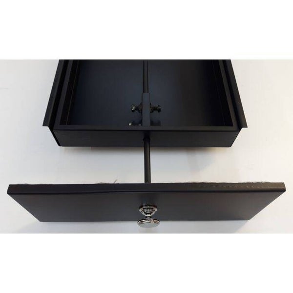 - Cendrier en fer épaisseur 1,2 mm : DIMENSIONS DU TIROIR 29,5 x 40,5 cm, avec réglage de la profondeur du tiroir jusqu'à 22 cm, bouton en laiton ou chromé (précisez votre choix dans le menu déroulant)
