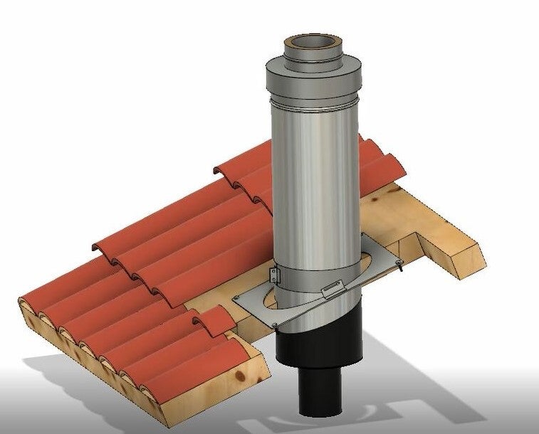 KIT PASSAGE DE FUMÉE DOUBLE PAROI INOX DIAM 250 POUR TOITURE BOIS OU BÉTON