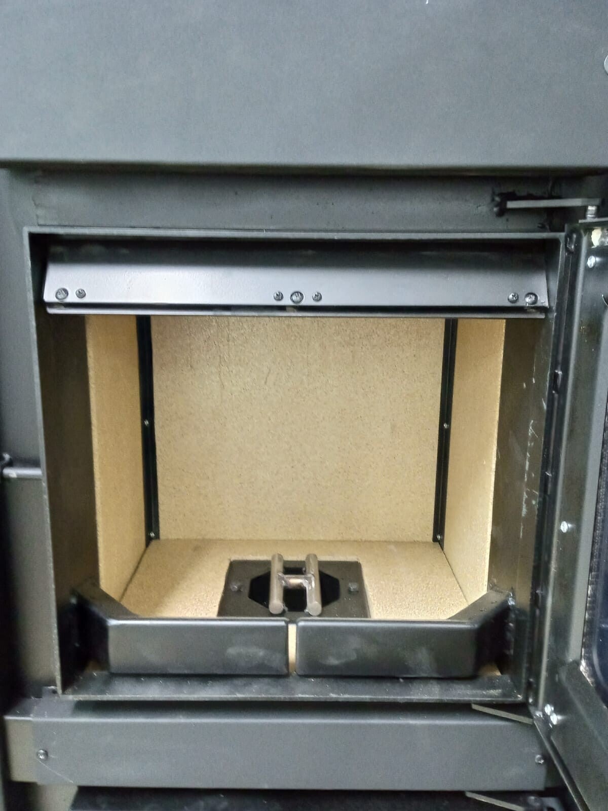- Combustion à flamme inversée : la flamme se retrouve sur deux portes différentes superposées équipées de vitres ce qui permet de profiter d'une flamme massive et en même temps d'optimiser la combustion. La flamme est allumée dans la chambre supérieure où se produit un processus de gazéification du bois avec une production notable de CO qui, dans la chambre inférieure, brûle en présence d'air secondaire inséré dans le brasier spécialement conçu, produisant des fumées particulièrement propres.