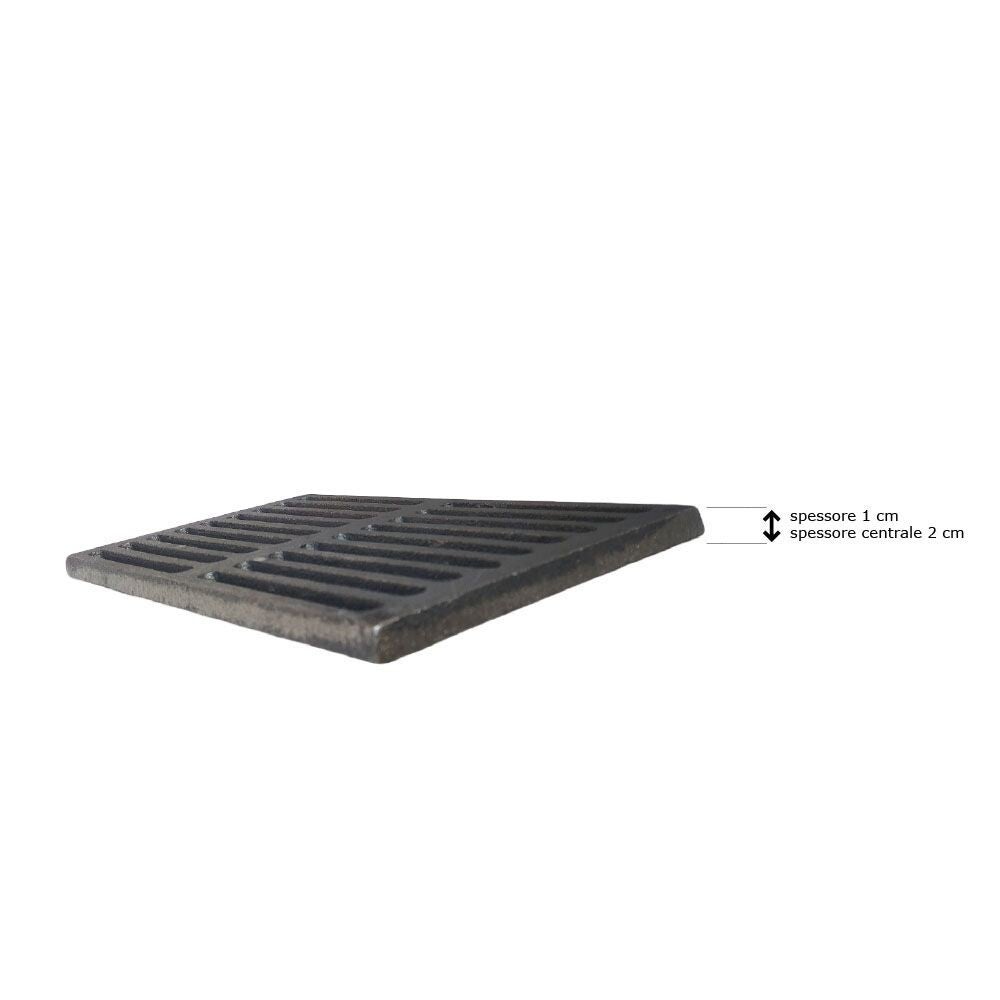 - Spécifications Grille en fonte pour la collecte des cendres – Épaisseur 1 cm et Épaisseur centrale 2 cm :
