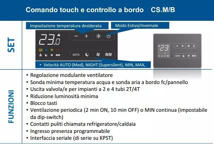 Ventilo-convecteur Rhoss modèle BRIO-I slim MVP 20, convecteur à commande tactile CS.M/B