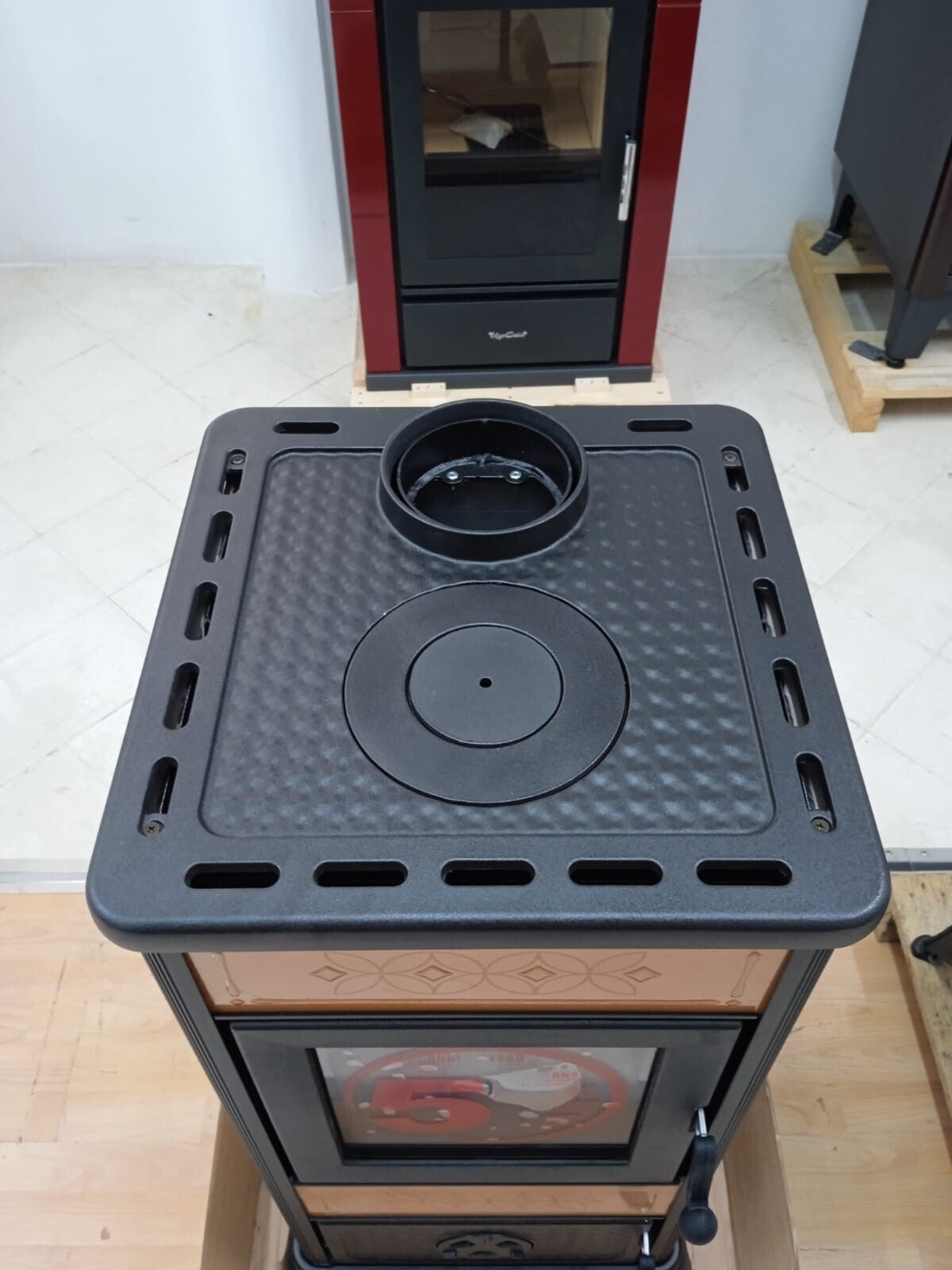 La façade et le dessus sont en fonte émaillée avec des anneaux amovibles pratiques pour réchauffer les aliments.